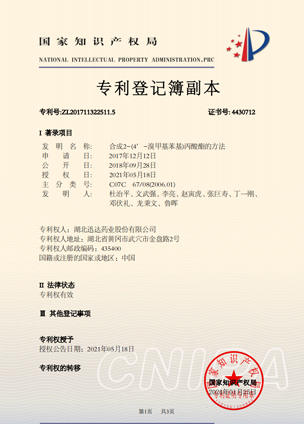 公司擁有一支高素質科研隊伍,具備專業(yè)而高效的研發(fā)能力。近幾年,共取得科技成果30項,其中9項獲國家發(fā)明專利,2項獲湖北省科技進步獎,開發(fā)新產(chǎn)品8個,綠色合成、手性合成和催化等技術引領行業(yè)發(fā)展。主要銷往歐美、日本、韓國、中東、印度等40多個國家和地區(qū)。